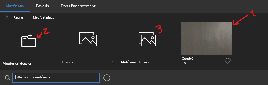 Matériaux" en ajoutant quelques sous-dossiers et en y glissant les